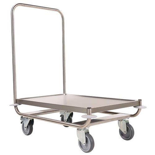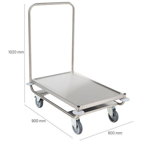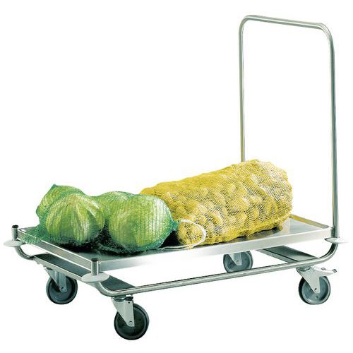 Platformwagen rvs met 1 vaste duwbeugel - Laadvermogen 120 kg