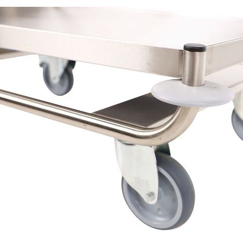 Geluiddichte plateau voor een stil transport. Kleine rand om de producten op hun plaats te houden. Platformwagen met bumpers op de vier hoeken.