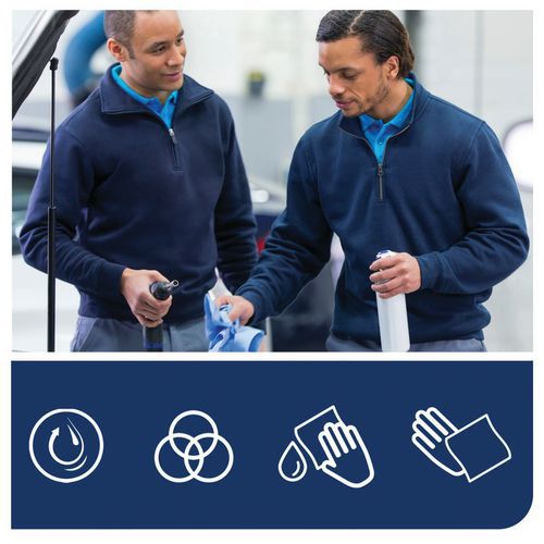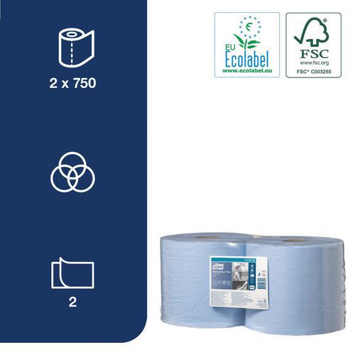 Stevige en absorberende tweelaags poetsrol voor eenmalig gebruik. 40% meer absorptie vergeleken met traditioneel papier. Veelzijdig: geschikt voor vrijwel alle afdroogtoepassingen. Veilig voor kortdurend contact met voedingsmiddelen, en voorzien van het Europese ecolabel. De blauwe kleur laat zien of er contact met voeding is.