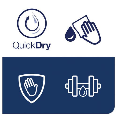 Papier met een uitzonderlijk absorptievermogen. QuickDry kwaliteit: steviger en beter absorberend dan gewoon papier. Beschermt de handen tegen warmte en vuil. Zeer doeltreffend voor opnemen van olie. Zeer sterk, ook in vochtige toestand. Ergonomische dispenserbox, eenvoudig te dragen, te openen en weg te gooien.
