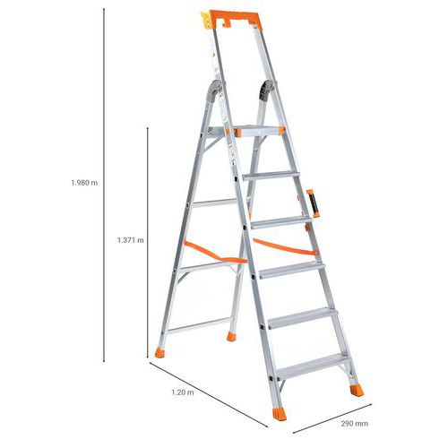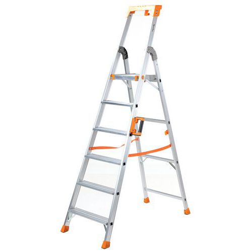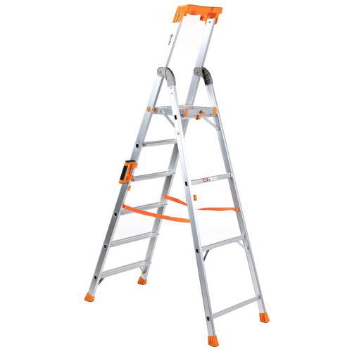 Professionele trap van aluminium, Toegangshoogte: 3.37 m, Platform hoogte: 1.371 m Professionele trap van aluminium, Toegangshoogte: 3.37 m, Platform hoogte: 1.371 m