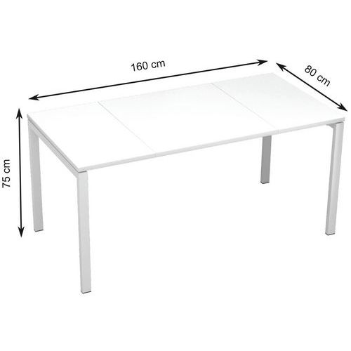 Recht bureau 160x80 cm met blad Décor Easy Office. Metalen structuur voor een perfecte stevigheid. Telescopische metalen balken. Randen van PVC, dikte 2 mm. Metalen voet met doorsnede 50 x 30 mm. Afgewerkt met witte epoxylak. Gepersonaliseerd en snel geïnstalleerd.