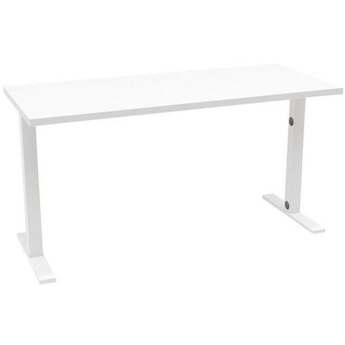 - Recht bureau met T-vormig onderstel en werkblad van spaanplaat met een dikte van 30 mm.
