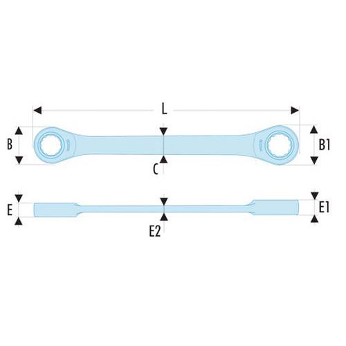 - Compact, d.m.v. het omkeren van de sleutel omkeerbaar ratelmechanisme.
