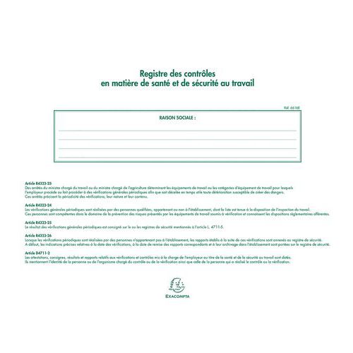 | Productnaam | Register gezondheids- en veiligheidscontroles op het werk 20 pagina FR |