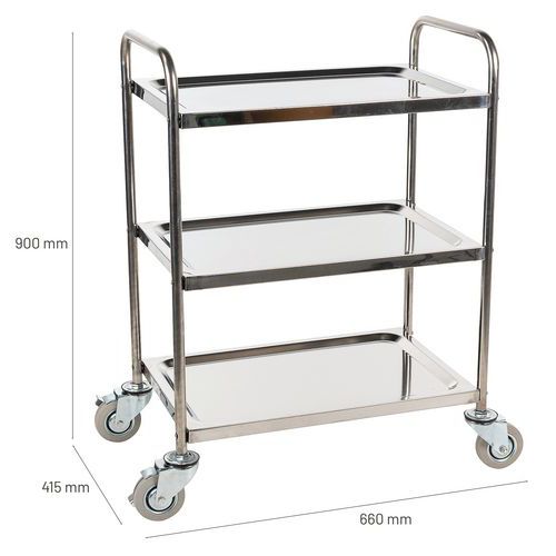 Rvs wagen, Max. belasting: 100 kg, Totale hoogte: 900 mm, Totale breedte: 415 mm, Totale lengte: 660 mm