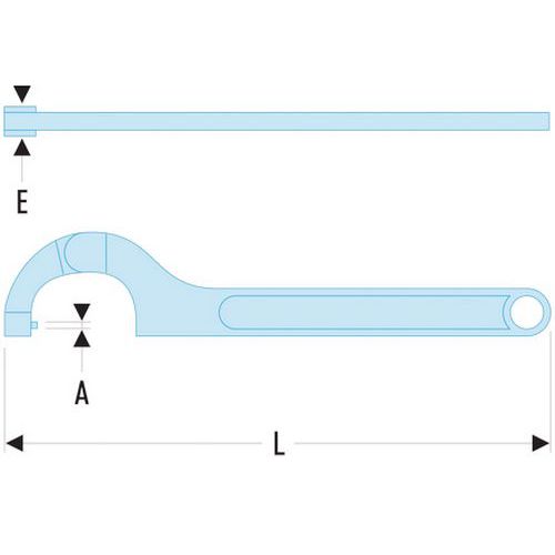 Scharnierende haaksleutels, Bek opening: 5 mm, Lengte: 280 mm, Gewicht: 360 g, Type nr.: 126A.80