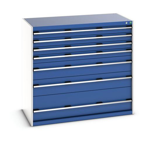 Schuifladenkast SL-13712-7.2. met 7 Schuifladen VS. RAL 7035/5010 Gemaakt in het UK Max. belasting (kg) : 1500