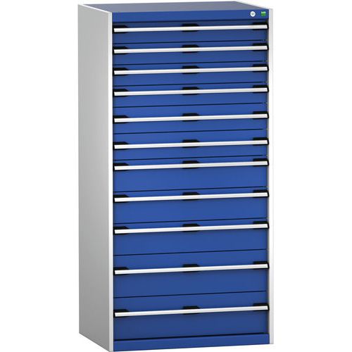 Schuifladenkast SL-8616-11.2. met 11 Schuifladen VS. RAL 7035/5010 Gemaakt in het UK Max. belasting (kg) : 1500
