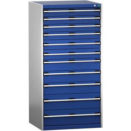 Schuifladenkast SL-8716-11.2. met 11 Schuifladen VS. RAL 7035/5010 Gemaakt in het UK Max. belasting (kg) : 1500