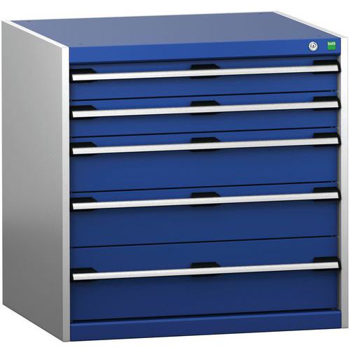 Schuifladenkast SL-878-5.2. met 5 Schuifladen VS. RAL 7035/5010 Gemaakt in het UK Max. belasting (kg) : 1500