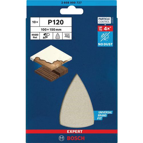 Schuurblad verknoopt Delta M480 - Expert Stofafzuiging tot 4 keer hoger dan standaard schuurplaten Bijzonder efficiënte stofafvoer met Bosch Particle Control. Eenvoudig op zijn plaats te zetten door klittenbandbevestiging. Ideaal voor zeer efficiënt stofvrij schuren van vlakke oppervlakken, voor het voorbewerken en voorbereiden van te schilderen oppervlakken en voor het voorbereiden of afwerken van gipsplaat. Ideaal voor verbouwers: schoon en efficiënt.