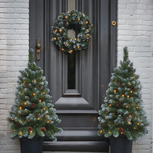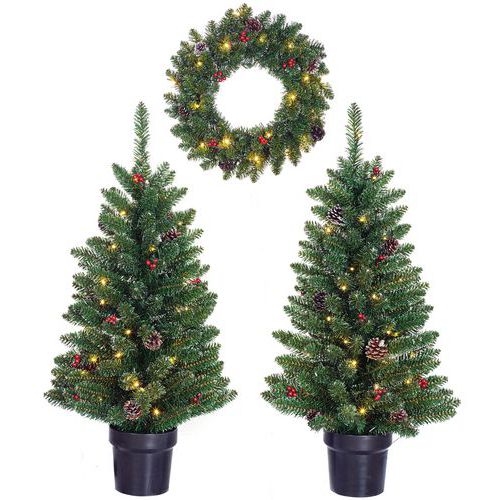 Set 2 kerstbomen en 1 krans Norton met verlichting