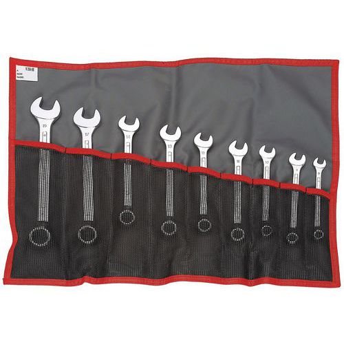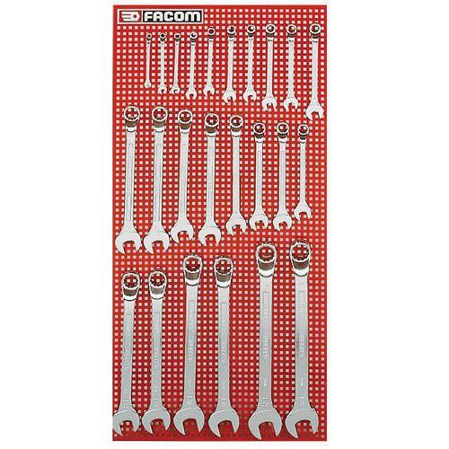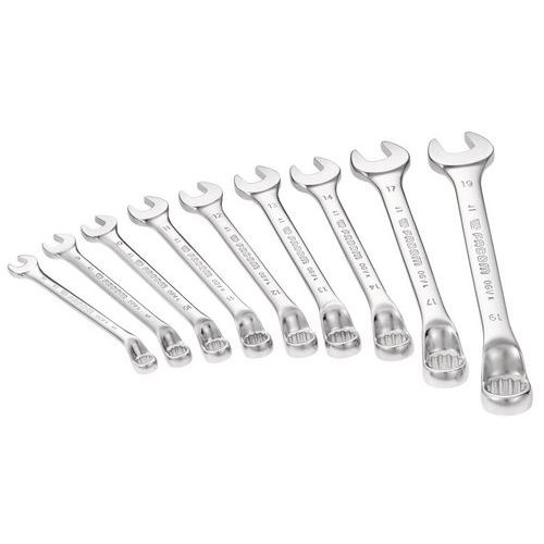 Set van haaks gebogen combinatiesleutels, metrisch, Aantal sleutels: 18, Omkeerbare ratel: nee