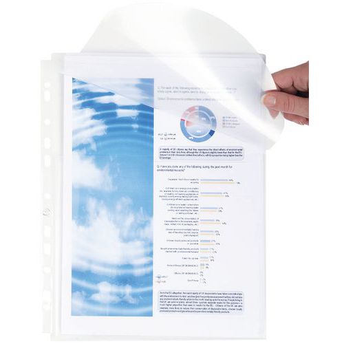 | Productnaam | Showtas geperforeerd met balg opening aan bovenzijde glad PP 20/100 A4, Kleur: Transparant |