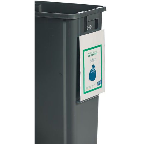 | Productnaam | Signaalbord voor afvalbakken met afvalscheiding, Kleur: Transparant, Materiaal: PVC, Materiaal: Kunststof |