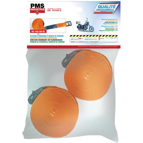 | Productnaam | Sjorbanden met gespen, Lengte: 3 m, Breedte: 25 mm, Max. belasting: 125 daN, Type band: polyester |