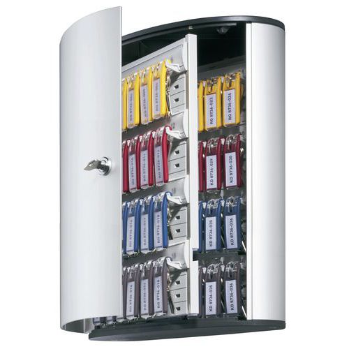 Design sleutelkast voor Key Clip sleutelhangers. Past zich aan de grootte van uw sleutels aan dankzij in hoogte verstelbare balkjes. Functioneel, de deur kan tot 90° geopend worden. Gegarandeerde sluiting door het veiligheidsslot.