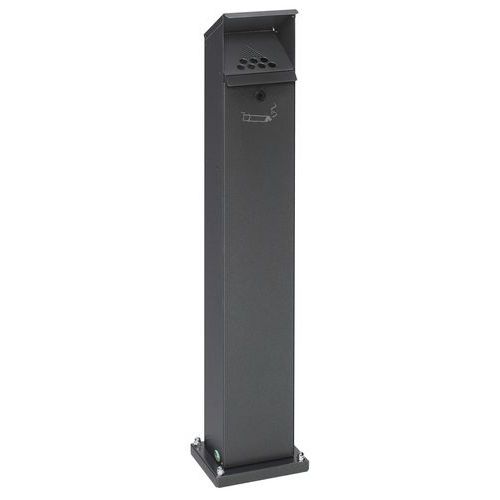 Asbak op voet, gemaakt gegalvaniseerd plaatstaal. Poedercoating van epoxy-polyester of rvs. De asbak is voorzien van een slot (1 sleutel) en een bevestigingsplaat. Aantrekkelijke asbak voor buiten!