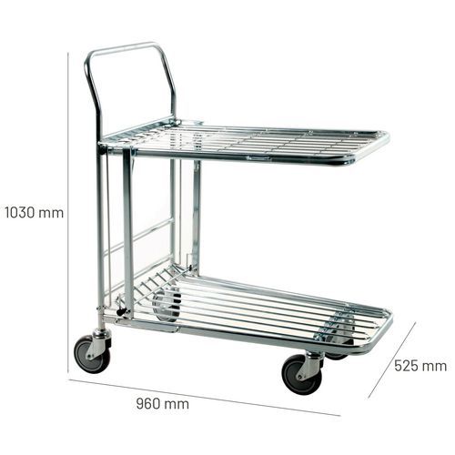 | Productnaam | Stalen wagen van draadstaal, Zwenkwiel Ø: 125 mm, Max. belasting: 300 kg, Totale hoogte: 1030 mm |