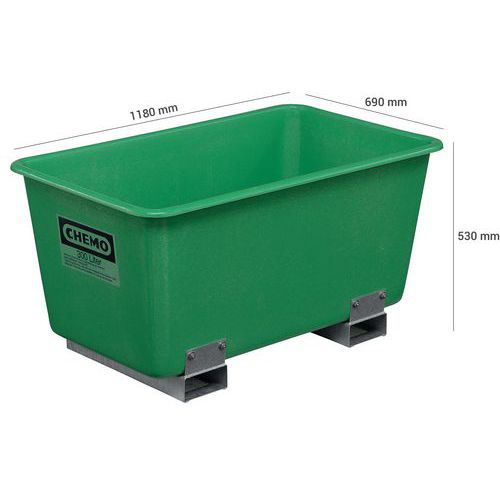 | Productnaam | Stapelbare bak met geleidegroeven, Totale inhoud: 300 L, Totale hoogte: 530 mm, Totale breedte: 690 mm |