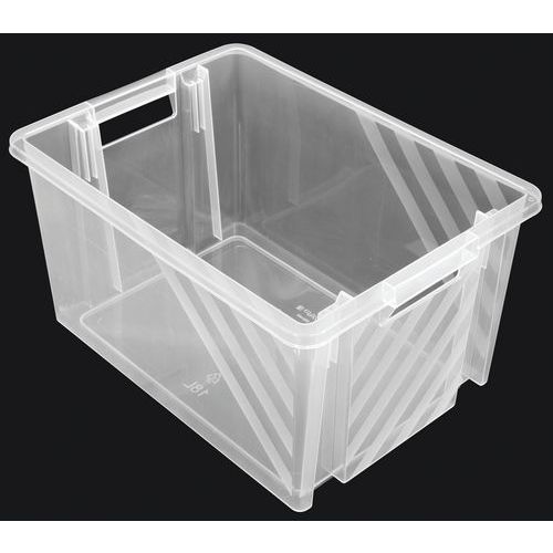 Stapelbare bak met open handgrepen ter vereenvoudiging van het hanteren.