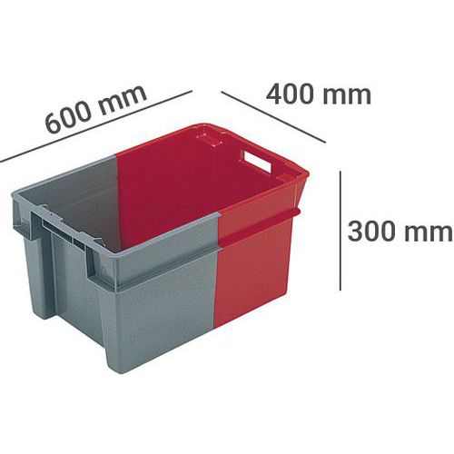 Stapelbare tweezijdige bak, Totale inhoud: 50 L, Totale hoogte: 300 mm, Totale breedte: 400 mm