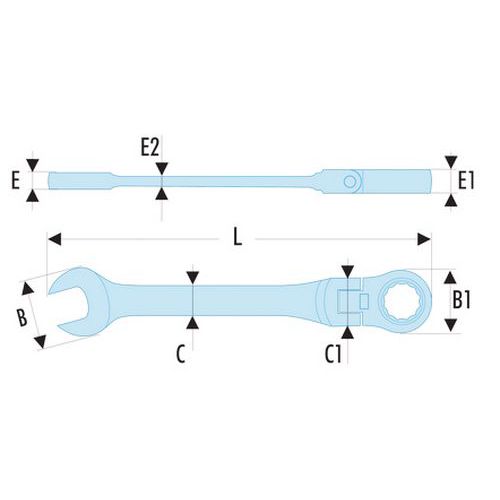- Compact en omkeerbaar ratelmechanisme door het omdraaien van de sleutel.