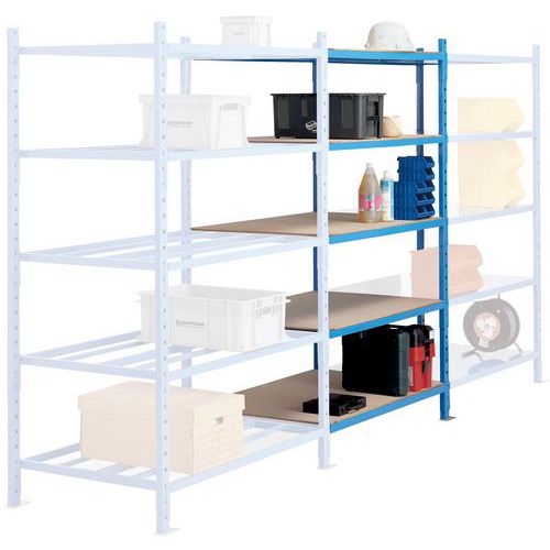 Zeer stabiele stelling met hoog draagvermogen (tot 2 ton). Uitgerust met een buislegbord voor een goede ventilatie van de geplaatste spullen. Houten afdekplaat geleverd bij elk legbord (opslag van kleine voorwerpen). Breid uw stellingen eenvoudig uit met één of meer aanbouwstelling(en).