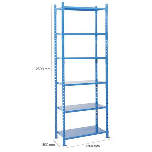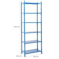 Zeer stabiele stelling met hoog draagvermogen tot wel 2500 kg. Eenvoudig uit te breiden met één of meer aanbouwstelling(en). Met dicht legbord, om te voorkomen dat voorwerpen kunnen vallen. Eenvoudig te monteren en uit te breiden zware stelling.