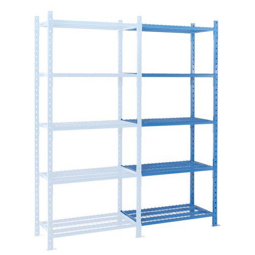 Stevige en stabiele stelling van staal met een groot laadvermogen. Betrouwbaar bij brand: volledig geventileerd met roosterlegborden. Eenvoudig uit te breiden stelling met de toevoeging van 1 of meer aanbouwstukken.