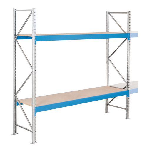 Stevige stalen magazijnstelling met zeer grote vakken. Vele beschikbare profielen voor verschillende toepassingen. Ligger met sponning en inkepingen voor haak van de dwarsliggers. Staanders met treden flesprofiel met geperforeerde buitenzijde. Gegalvaniseerd legbord, zeer bestendig tegen vet en vocht. Eenvoudige aanbouwstelling, zeer eenvoudig te monteren. Gegalvaniseerd legbord: hoge bestendigheid tegen vocht!