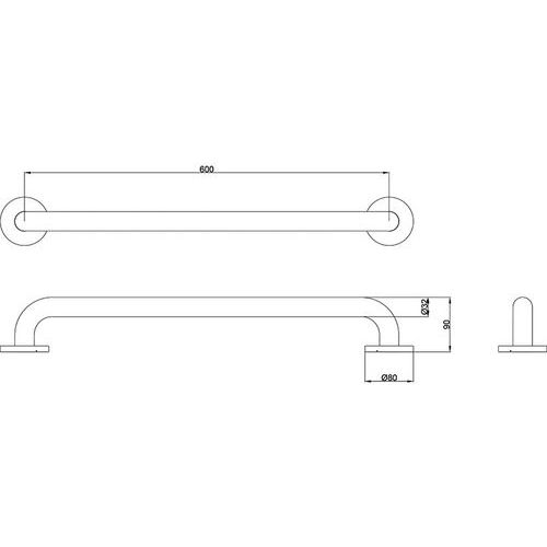 Steunstang, Materiaal: Roestvrij staal, Type bevestiging: Om te schroeven, Lengte: 60 cm, Staaf Ø: 32 mm