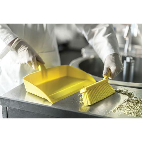 Stoffer met zachte haren en ergonomische steel. Samen met het stofblik maakt dit het mogelijk fijne deeltjes te verwijderen.