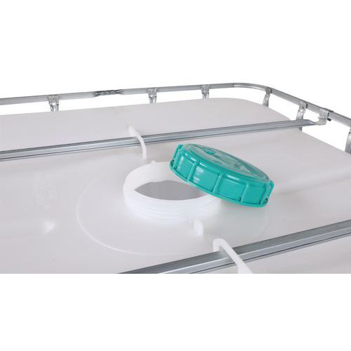 | Productnaam | Transportbak 1000 l Unicube, gehomologeerd + Houten pallet, Totale inhoud: 1000 L, Totale hoogte: 1175 mm |