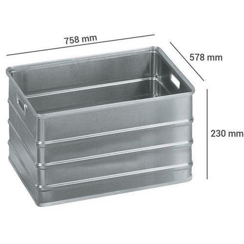 | Productnaam | Transportbak aluminium, Totale inhoud: 77 L, Totale hoogte: 230 mm, Totale breedte: 578 mm |