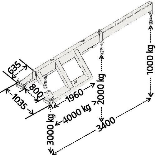 | Productnaam | Telescopische arm voor vorkheftruck, Max. belasting: 3000 kg, Totale breedte: 1035 mm, Gewicht: 216 kg |