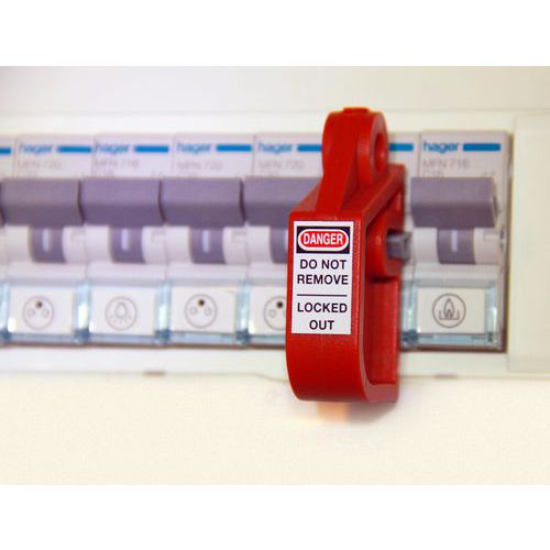 | Productnaam | Universeel vergrendelingssysteem voor schakelaars, Kleur: Rood, Materiaal: Nylon met metalen handschroef ZP |