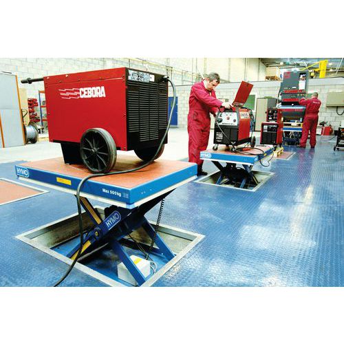 - Heftafels Hymo AX Lift voor gebruik met hefvermogen tot 2000 kg en een hefhoogte van 800 mm.