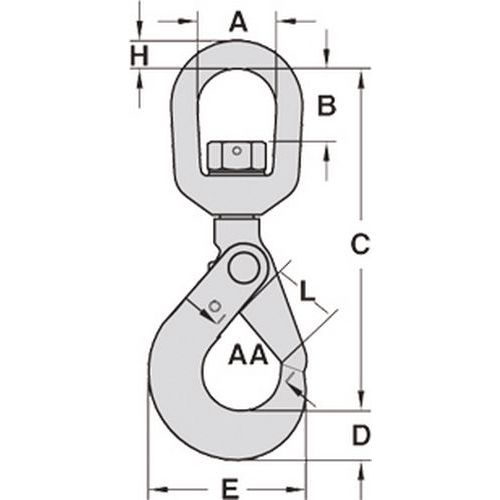 Veiligheidshaak met wartel met automatische sluiting, Veilig hefvermogen: 3150 kg, Totale hoogte: 274 mm