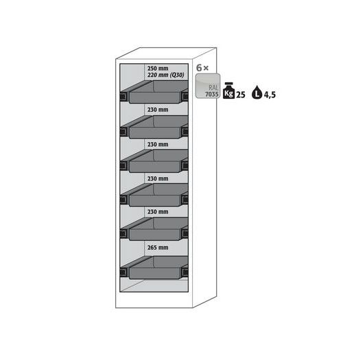 Veiligheidskast Q-CLASSIC-90 Q90.195.060 grijs/blauw_Asecos, Totale hoogte: 1953 mm, Totale breedte: 599 mm Veiligheidskast Q-CLASSIC-90 Q90.195.060 grijs/blauw_Asecos, Totale hoogte: 1953 mm, Totale breedte: 599 mm
