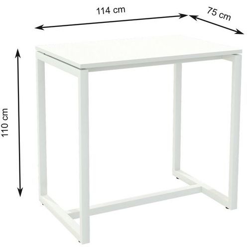 Metalen structuur voor een perfecte stevigheid. Gemelamineerd blad, dikte 25 mm, met een pvc-rand van 2 mm. BxHxD: 114 x 110 x 75 cm. Onderstel van buisstaal 50x40 mm. Epoxylak wit. Stelvoetje voor nivellering. Monteerklaar geleverd met handleiding.