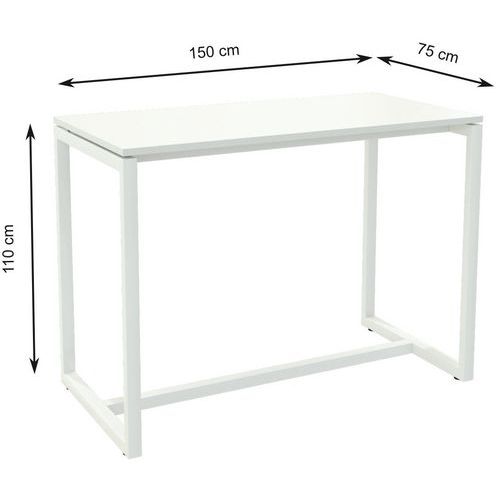 Metalen structuur voor een perfecte stevigheid. Gemelamineerd blad, dikte 25 mm, met een pvc-rand van 2 mm. BxHxD: 114 x 110 x 75 cm. Onderstel van buisstaal 50x40 mm. Epoxylak wit. Stelvoetje voor nivellering. Monteerklaar geleverd met handleiding.