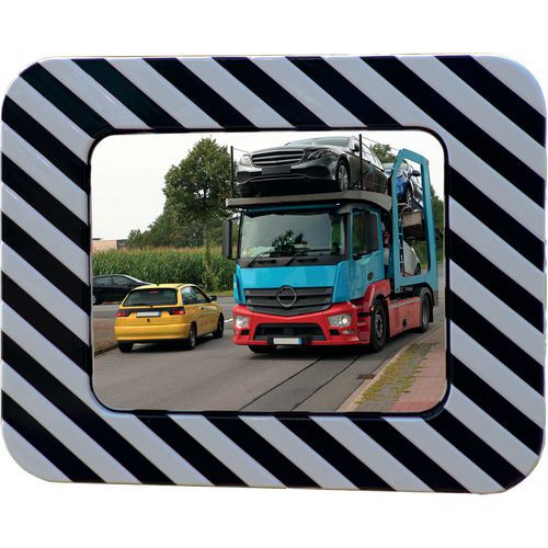 Verkeersspiegel om de veiligheid te verbeteren en gevaren in potentieel gevaarlijke gebieden te verminderen, wit/zwart frame in overeenstemming met het decreet van 21/09/1981.