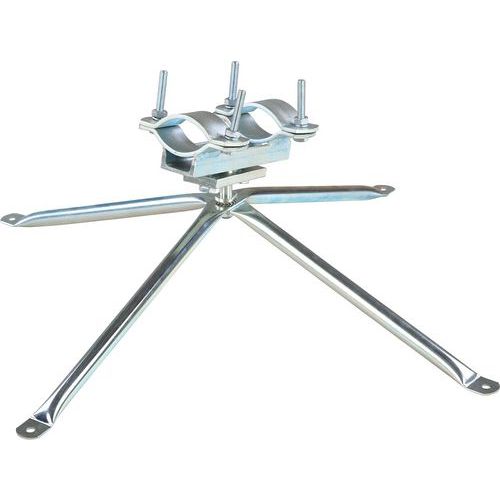 Vierpuntsbevestiging voor paal of wand met kogelgewricht, sterker dan een conventionele bevestiging.