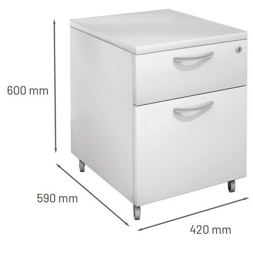 | Productnaam | Verrijdbaar ladeblok, Materiaal: Gemelamineerd, Totale hoogte: 60 cm, Aantal laden: 2, Totale breedte: 42 cm |