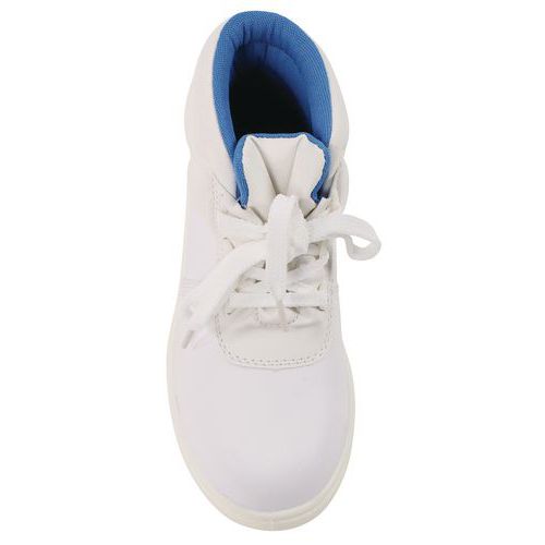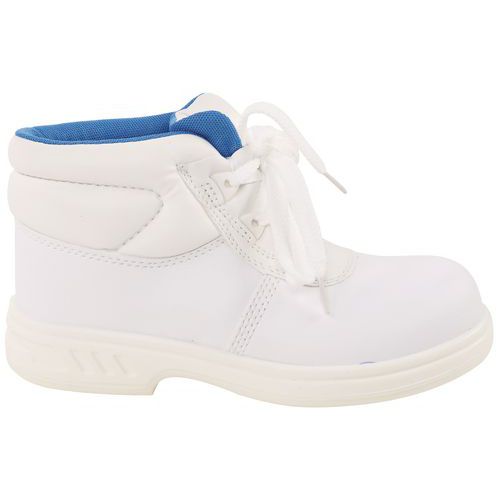 Veiligheid en een betaalbare prijs. Water resistent leer met halve kruipneus antistatisch en antislip weerstand dual density loopzool. Veter uitvoering is ideaal in de schoonmaakwereld.