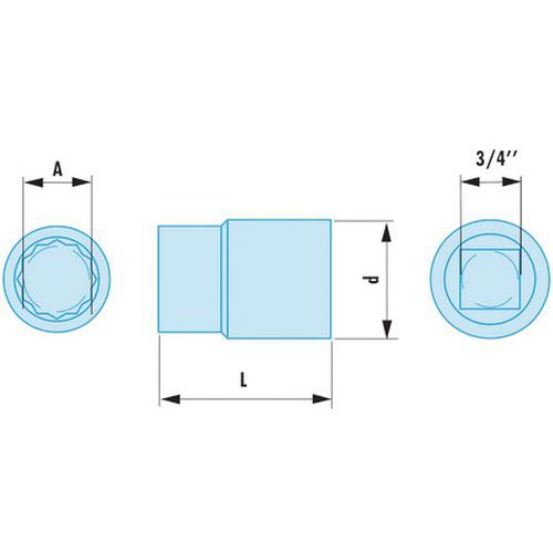 Vonkvrije 12-kant doppen 3/4, in inch-maten