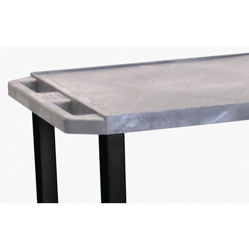 Eenvoudige montage, geen gereedschap nodig. Wagen van stevig gerecycled kunststof, bestand tegen vochtigheid en slechte weersomstandigheden. Plateau met antislipbekleding en een ruimte tussen elk niveau van 420 mm. Ergonomische handgreep. Twee vaste wielen en twee zwenkwielen met remmen, niet-strepend. Max. belasting (kg) : 180 kg