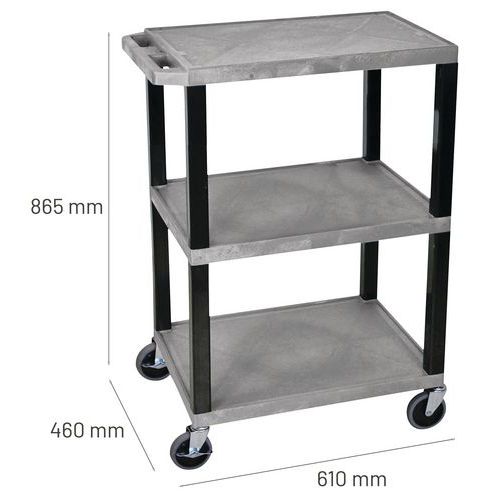 Wagen van gerecycled kunststof - 3 plateaus - Hoogte 108 cm - Draagvermogen 180 kg